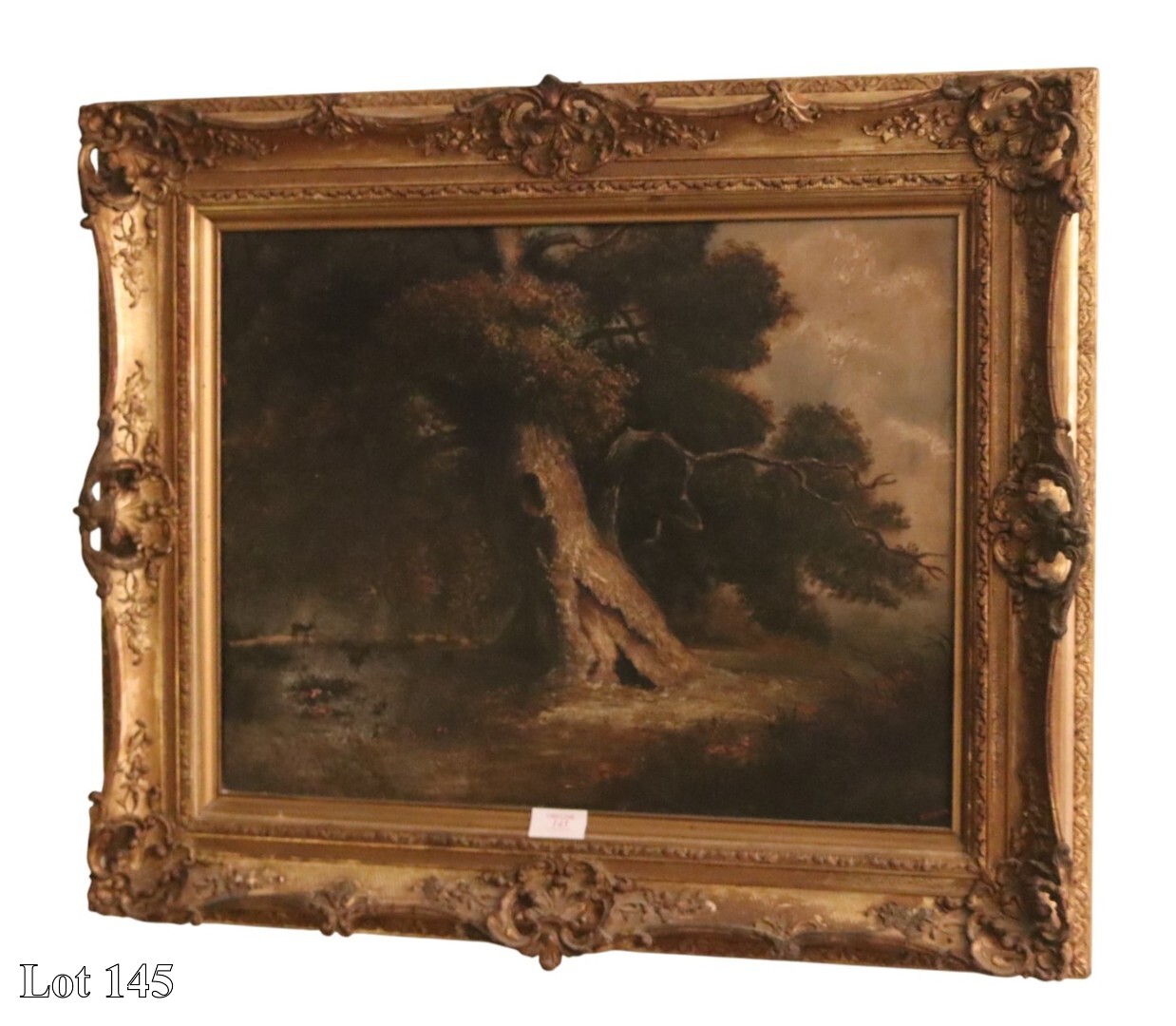 20th Century, Forest Scene, oil on canvas in ornate gilded frame.