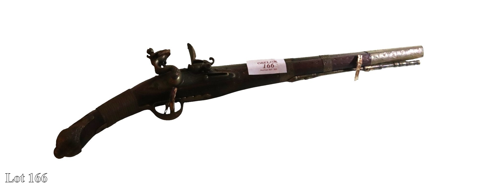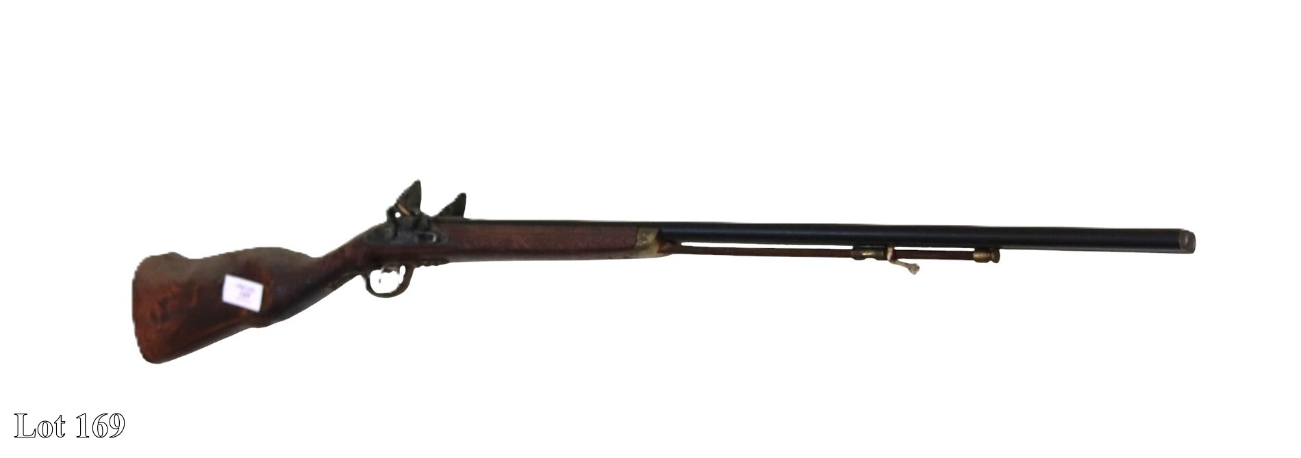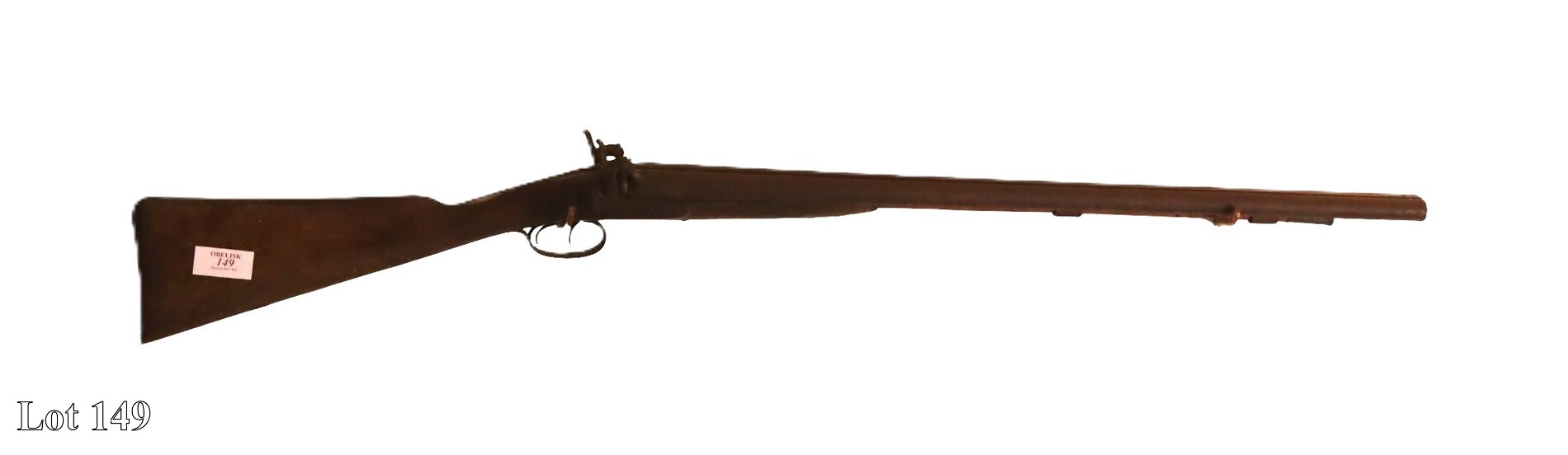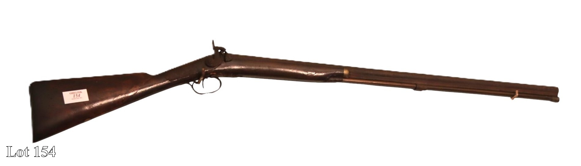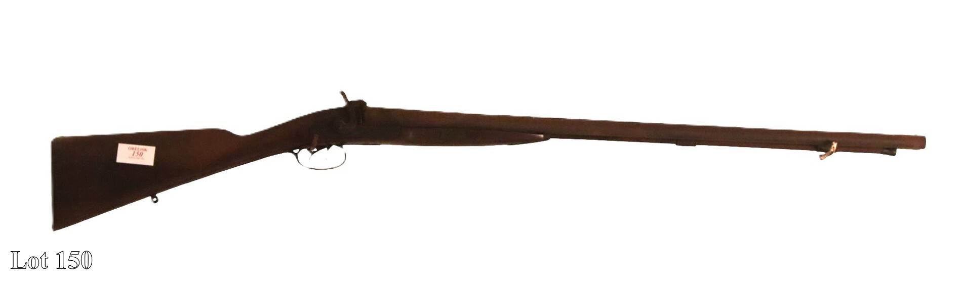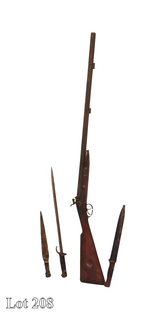 19th Century double barrel percussion gun, two bayonets, and one dagger.