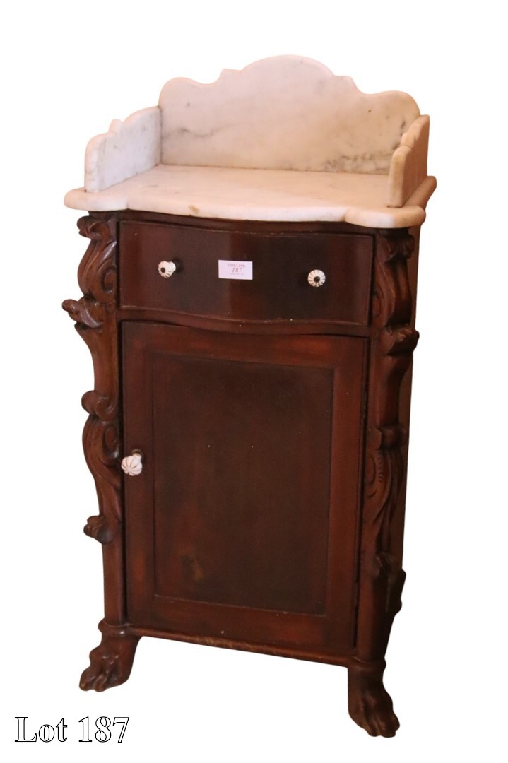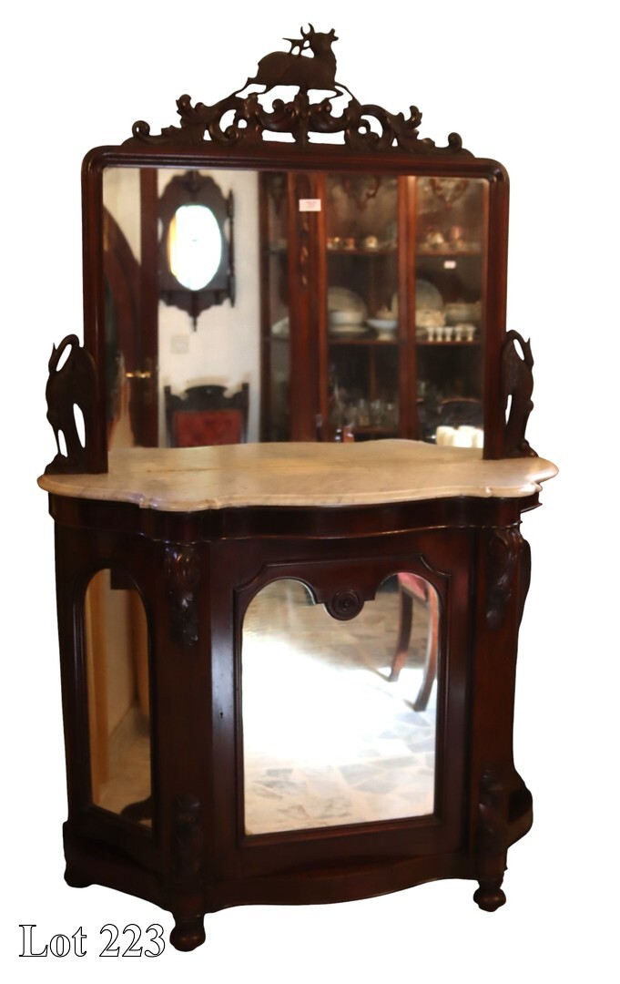 19th Century mahogany chiffonier, with marble top and mirror back. ( Width:124 Height:211 Depth:46)