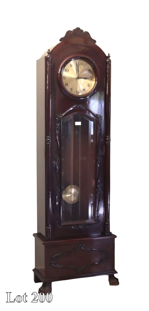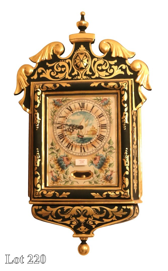 A modern Maltese clock painted and gilded, with Roman Numerals, including movement. ( Width:58 Height:108 )