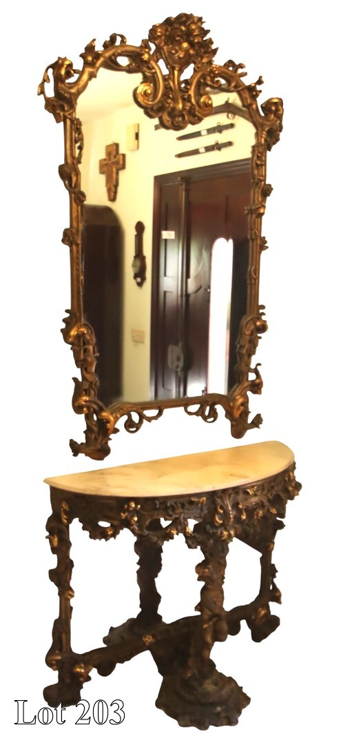 19th Century carved wood gilded mirror. ( Width:106 Height:185 )