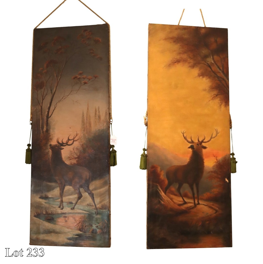 A pair of 19th Century, Stag's, oil on canvas, (without frame).