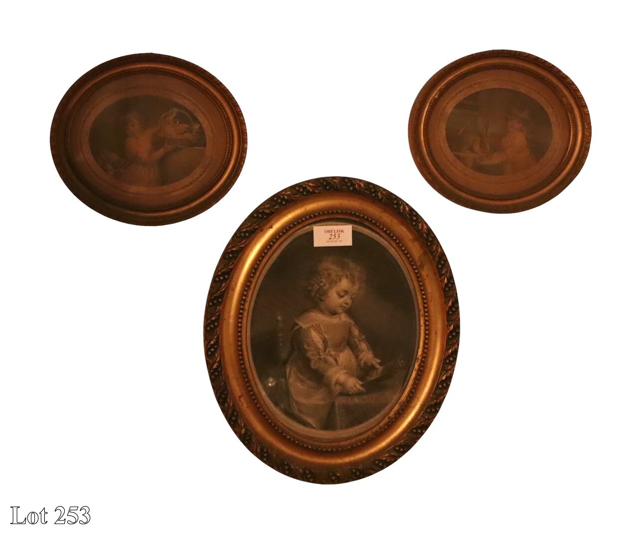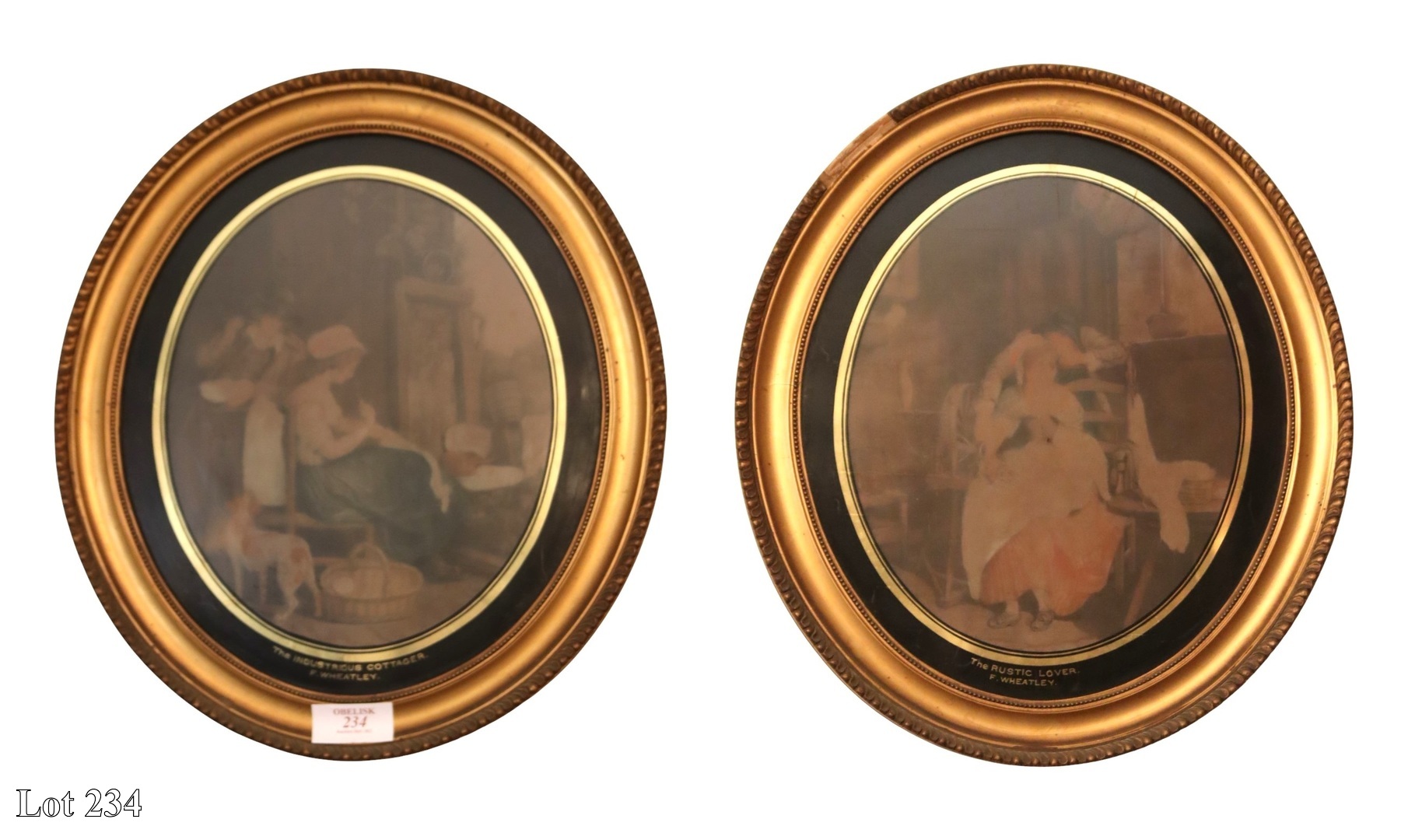 A pair of late 19th Century The Industrious Cottager, prints, in oval ornate gilded frame.