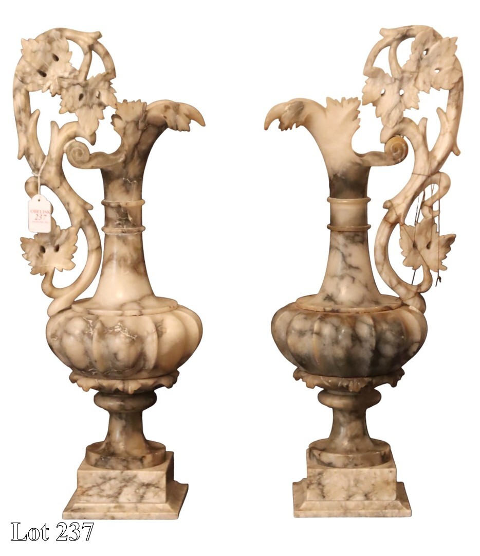 A pair of 19th Century alabaster urns. ( Height:58 )