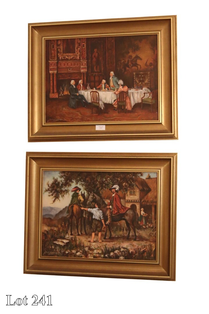 J. Caruana, a pair of household scenes, oil on canvas, signed. ( Width:77 Height:62 )