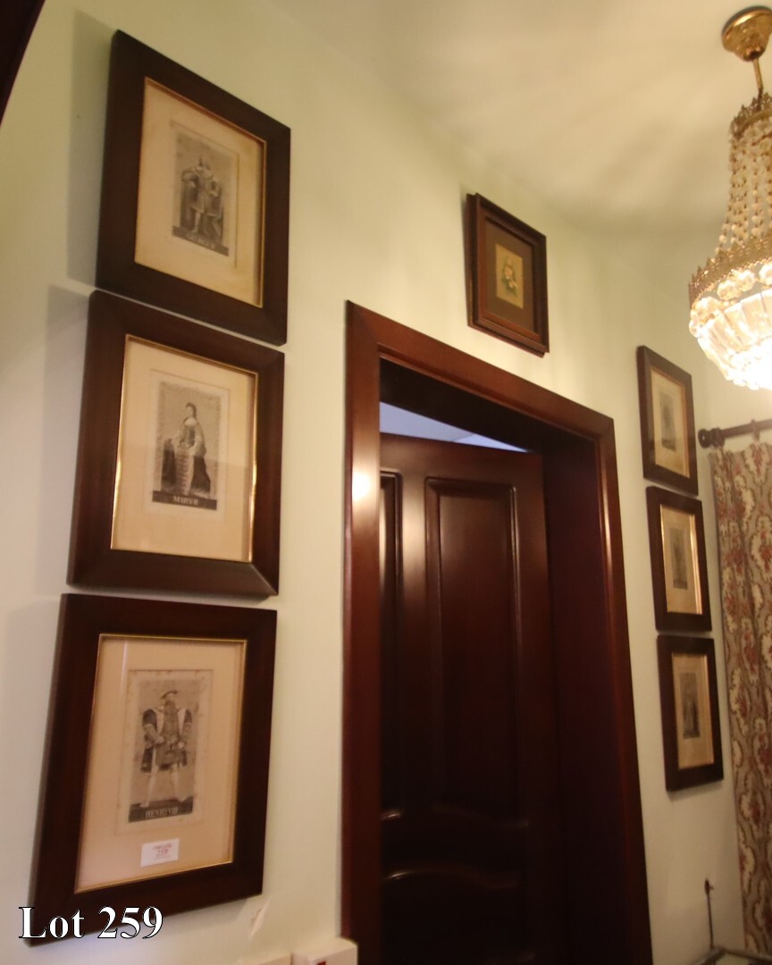 A set of portraits of Henry VII, Mary II, George II, Victoria, Oliver Cromwell, Charles I, prints.